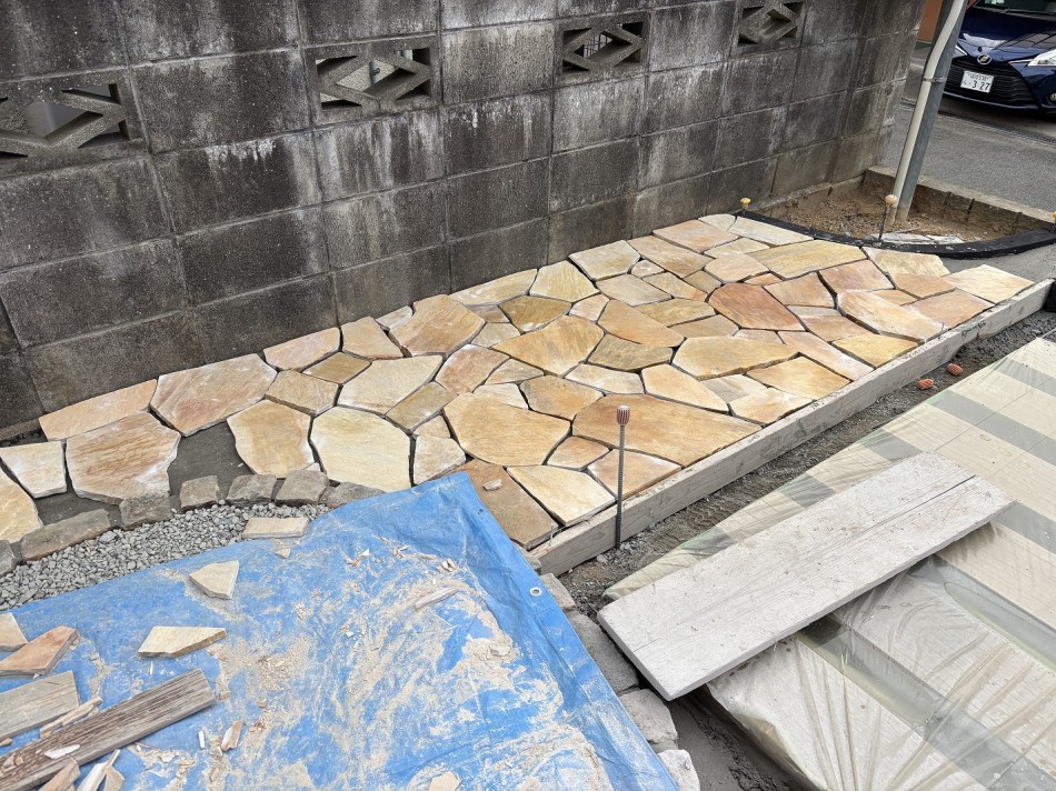 曲線が多いので、石を加工する作業が多くなりますね(・・;)